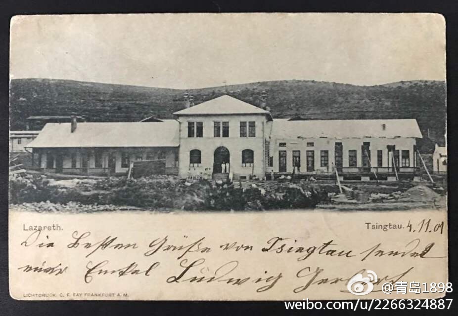 作為青島最早被建設(shè)的公共性建筑之一,野戰(zhàn)醫(yī)院分布在一大片坡度很大的山丘的南面,距離前海有三個(gè)街區(qū),這一區(qū)域?qū)嵸|(zhì)上已接近規(guī)劃的歐洲人居住區(qū)的邊緣。1899年,總督府野戰(zhàn)醫(yī)院開始動(dòng)工興建。1900年,總督府野戰(zhàn)醫(yī)院就已改為督署醫(yī)院。1904年,整個(gè)建設(shè)工程全部完工。至1906年,醫(yī)院共投資198萬(wàn)馬克,占地6.62萬(wàn)平方米,建筑面積7282平方米。