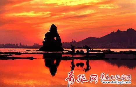????落霞漫天,染紅了城市和大海,也給予蒼茫大海中屹立了千百年的石老人,披上了溫暖的外衣。