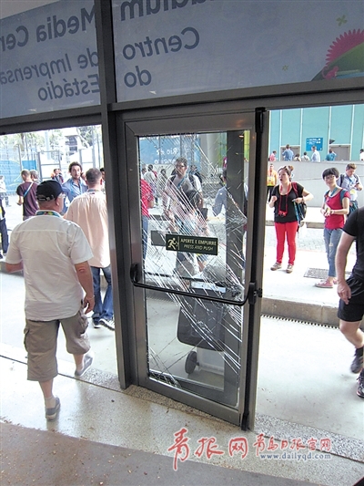 ????事后記者了解到事情的起因是,一開始很多無票的智利球迷都分散在各個(gè)檢票口試圖購買“黃牛”票,但隨著無票球迷越聚越多,“黃?!笔种械那蚱币苍絹碓劫F,急于想看球的智利球迷情緒開始失控,他們開始逐漸聚攏。而恰在此時(shí),一名巴西警察在安檢口對一名試圖混入場地的智利女球迷進(jìn)行了動(dòng)作較大的推搡,這成為智利球迷情緒最終失控的導(dǎo)火索,他們在大聲抗議警察暴力執(zhí)法的同時(shí),開始向距這一安檢口最近且安保力量薄弱的新聞中心發(fā)起沖擊。