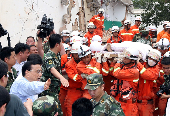 ??? “讓傷員先走!”8月4日,李克強(qiáng)總理來到云南魯?shù)榈卣鹫鹬旋堫^山鎮(zhèn)考察災(zāi)情,在察看廢墟上的救援情況時(shí),幾名戰(zhàn)士抬著剛獲救的傷員走出,李克強(qiáng)主動(dòng)讓道,并抬起手臂護(hù)送隊(duì)伍離開??疾熘?,李克強(qiáng)多次遇到搶救傷員的隊(duì)伍,他都主動(dòng)招呼隨行人員讓道保證救援順利進(jìn)行。