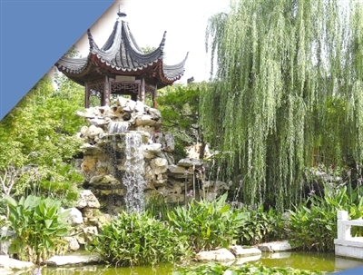江蘇園坐落于中華園南端,占地近2000平方米,是中華園內(nèi)僅次于北京園的第二大園。展館管理人員介紹,園內(nèi)植有50余種植物,從設(shè)計(jì)施工到后期養(yǎng)護(hù)都耗費(fèi)了極大的心血。起始于春秋時(shí)期的江蘇園林以私家園林為主,是中國(guó)古典園林藝術(shù)的翹楚,其中的拙政園被譽(yù)為“中國(guó)園林之母”。在一座北方的海濱城市復(fù)現(xiàn)出原汁原味的江蘇園林景觀,這足以使人感到出乎意料。