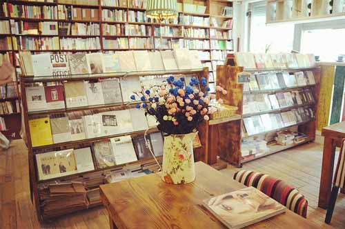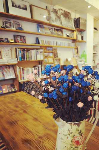 ????學(xué)苑書店最早的位置,在老青島繁華的西部商業(yè)街背后,我戲稱之為“浮華背后”。那是間不足20平米的小店,平面空間的不足,完全被立體空間的延伸所彌補,四壁矗立著兩米多高的書架,讀者或埋頭在中間狹長的展臺,或顧盼于四周挺拔的書架。我很喜歡這種“小”店,置身其間,越是空間位移的局促越能體現(xiàn)一種學(xué)海無涯的博大。而在東部新區(qū)開業(yè)的新店,則處在商業(yè)區(qū)與大學(xué)區(qū)的邊緣,戲稱為“在水一方”。在這個面積足有老店三倍大的空間里,書店主人充分利用平面的布局,讓知識顯得更加平易近人。比肩高的敦實質(zhì)樸的原木書架,輝映著充滿現(xiàn)代感的繪畫和攝影作品,糅合進輕松優(yōu)雅的背景音樂,飄溢出馥郁的書香和咖啡香,用更隨和而又深遠的享受擁撫著每一位讀者。