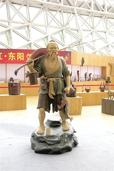 在植物館的竹藤藝術(shù)展區(qū)內(nèi),有幾件東陽立體竹編精品。其中最大的一件有一人多高,小的也有四五十厘米高,在浙江東陽,這個把直溜溜的竹子變成栩栩如生的人物或動物的技藝,已經(jīng)延續(xù)有1200年的歷史。