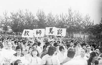 “文革”中,教師被貶為“臭老九”。后雖有所提高,但待遇仍很困難,導(dǎo)致年輕地位的知識(shí)分子不愿當(dāng)教師,從教多年的中年教師也有些跳出“師門(mén)”下海去。為樹(shù)立尊師重道的社會(huì)風(fēng)氣,經(jīng)過(guò)幾年醞釀,確定9月10日為新的教師節(jié),意在一開(kāi)學(xué)就行尊師重教之風(fēng)。6月6日、9月10日,一在舊學(xué)年之末,一在新學(xué)年之初,展示了不同的時(shí)代背景、不同的心態(tài)、不同的社會(huì)意義。