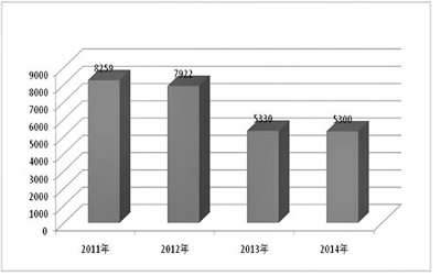 2011-2014年免費(fèi)師范生畢業(yè)人數(shù)統(tǒng)計(jì)圖