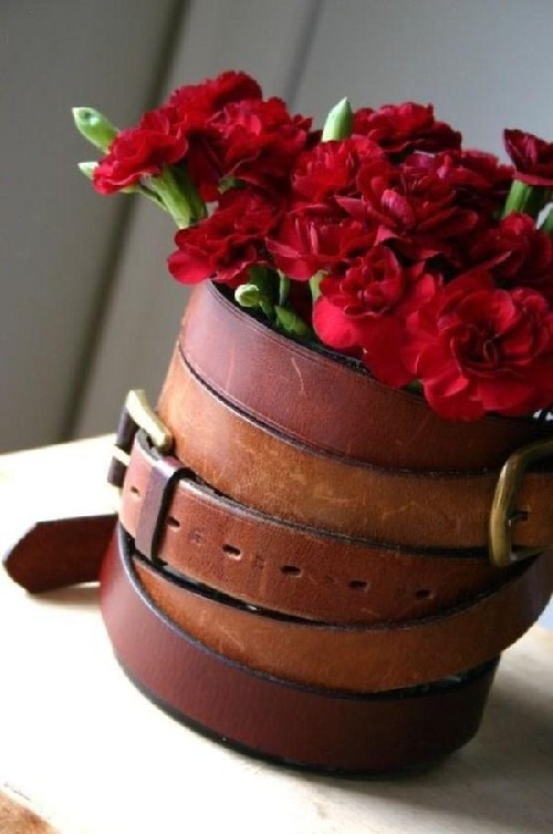個性的皮帶花盆,粗狂與嬌美。