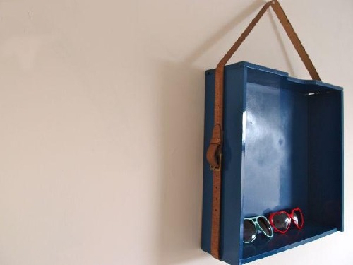 把皮帶和木盒固定在一起,掛在墻上就成了文藝而節(jié)省空間的儲(chǔ)物柜。