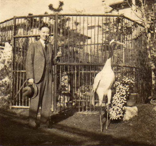 ????梅蘭芳先生在青島動物園丹頂鶴留影