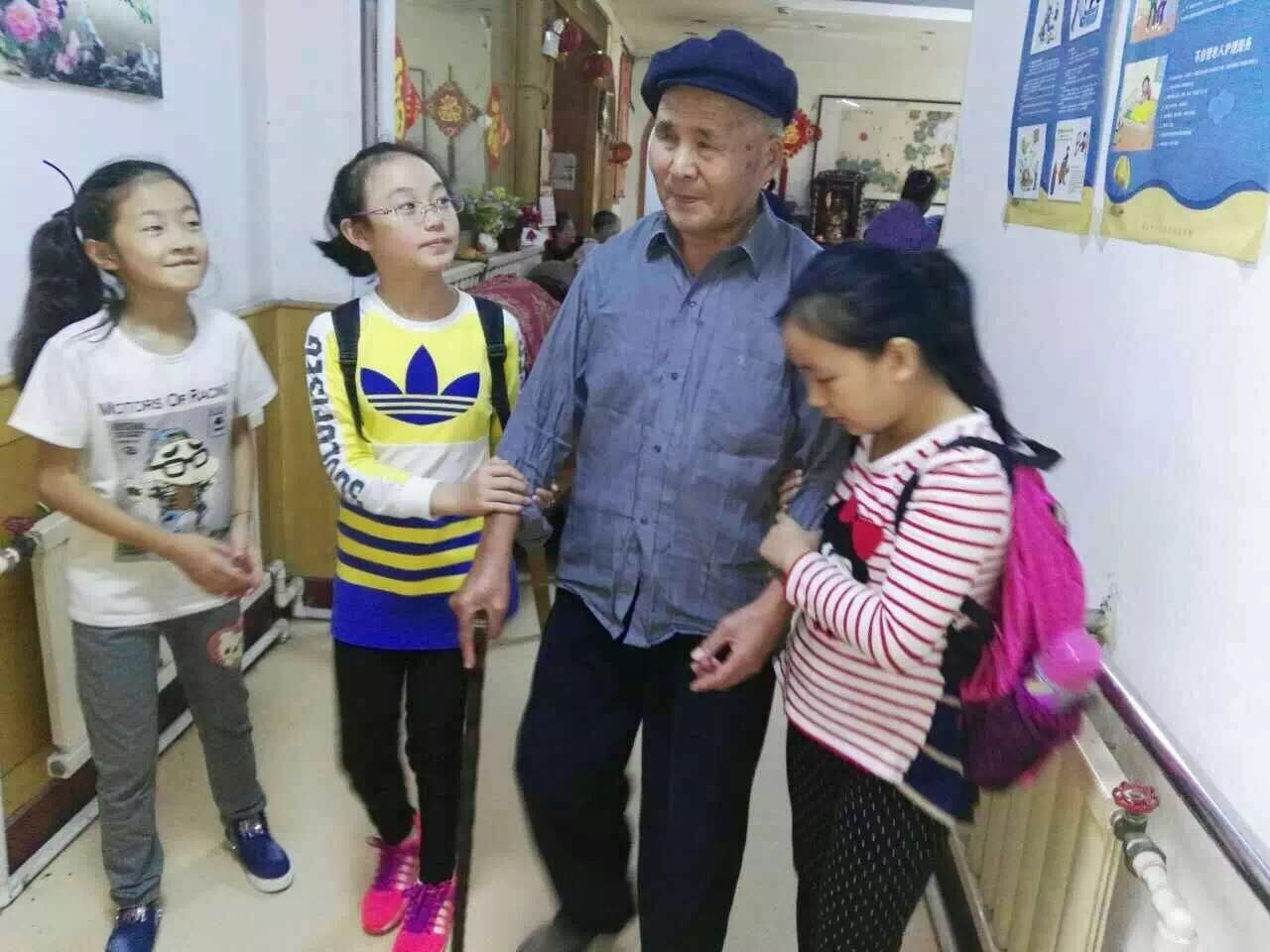 這次志愿者們還邀請(qǐng)了結(jié)對(duì)的臧秀英阿姨來(lái)看演出,大人們忙著找凳子準(zhǔn)備讓老人們坐的舒服,看的明白,孩子們則分別去每個(gè)屋邀請(qǐng)老人。