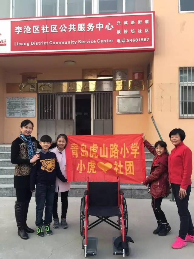 12月4日,青島虎山路小學(xué)小虎愛心社團(tuán)的徐晨棟、任瑠娜、楊佳慧三位同學(xué),來到了李滄區(qū)板橋坊社區(qū),捐獻(xiàn)了一個同學(xué)們過年用壓歲錢買來的輪椅,用于幫助社區(qū)中活動不便的老人。