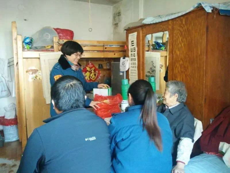 公交市南巴士海泊橋車隊愛心陪伴的志愿者一起結(jié)伴看望90歲的辛大娘。