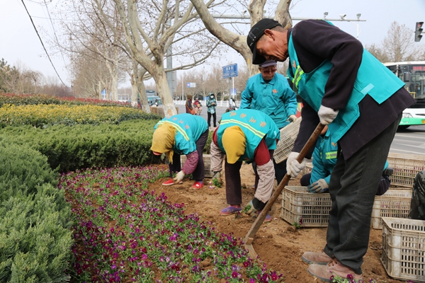 春季來臨,為營造良好的城市景觀,膠州市建設局園林處適時調進角堇、雛菊、金盞菊等早春時令花卉,對城區(qū)道路、節(jié)點及綠地穿插地栽、擺花布景,更換花盆花卉,進一步提升綠化美化檔次。