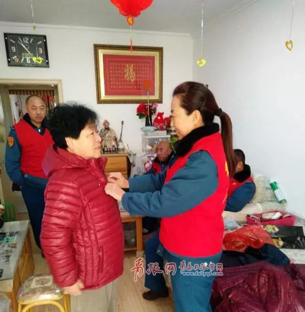 > 正文12月4日,公交隧道巴士有限公司第三分公司愛(ài)心永存志愿服務(wù)隊(duì)的志愿者孫琪、陳建偉、穆連森、孫建偉、王淑梅、王紅,下班后買了一件羽絨棉服送到了家住貴州路21號(hào)的郭玉英老人家。為了讓老人能選到滿意的顏色,志愿?jìng)兲匾夂屠习逭f(shuō)好了,先拿兩件衣服讓老人試穿。