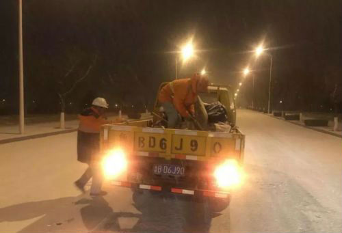 28日凌晨2點降雪逐漸停止,為保證高新區(qū)道路暢通,高新城維公司發(fā)揮鐵軍作風,值班人員不間斷撒播融雪劑到3點,4臺除雪車不間斷除雪作業(yè)。清晨5點,高新城維公司500多名職工全部上崗,對人行道、廣場及城區(qū)周邊死角展開清理,截止早上7點,積雪全部清理完畢。