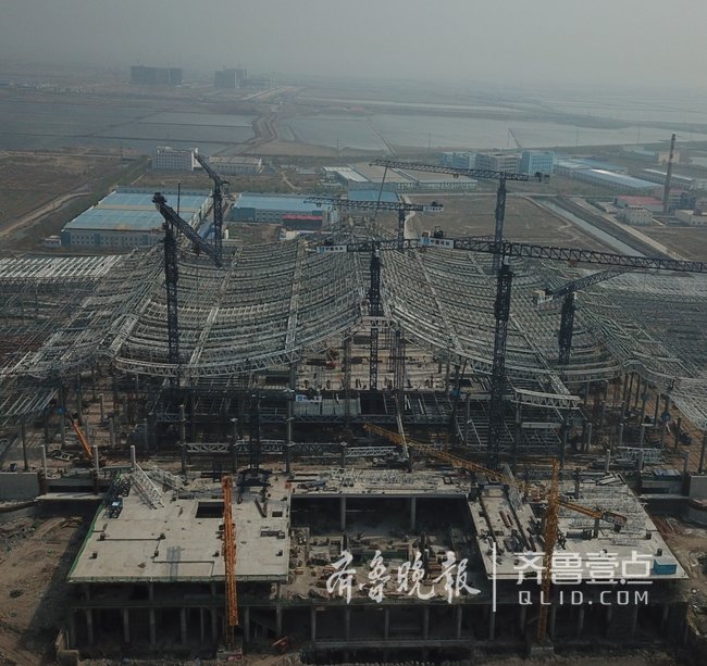 紅島站位于紅島經(jīng)濟(jì)區(qū)河套街道,是連接濟(jì)青高鐵、青連鐵路的重要樞紐車站。站房形式為線上式站房,站房建筑面積為70000㎡,主體建筑地上三層兩側(cè)局部四層,地下一層。建筑功能從下到上依次為:出站層、廣場層、站臺層、候車層及旅服夾層,總建筑高度60m,總用鋼量約4.7萬噸。站房設(shè)計為“一大兩小、中間大兩邊小”的浪花造型,別致的浪花造型完美契合了濱海車站的氣質(zhì)。車站在旅服夾層的兩側(cè)專門設(shè)計了濟(jì)青高鐵兩個觀景平臺,方便旅客在候車休息的時候可以看到海景,與車站的浪花造型交相呼應(yīng),這是國內(nèi)首個海景高鐵站。