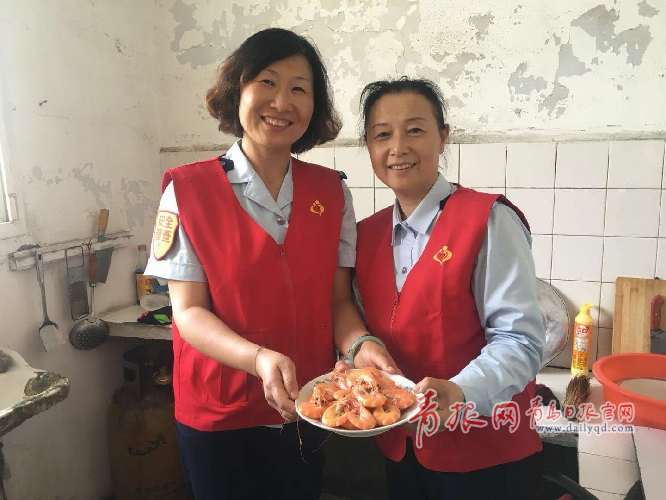 志愿者們?yōu)榇竽锞臏?zhǔn)備了特別適合濕熱天氣里喝的一款養(yǎng)生粥——祛濕、健脾開(kāi)胃、安神的紅小豆薏米蓮子粥,配上志愿者們帶來(lái)剛蒸好的豆角包子,老人開(kāi)心地品嘗著從志愿者手中遞來(lái)的蝦和黃花魚(yú),臉上露出了幸福的笑容。