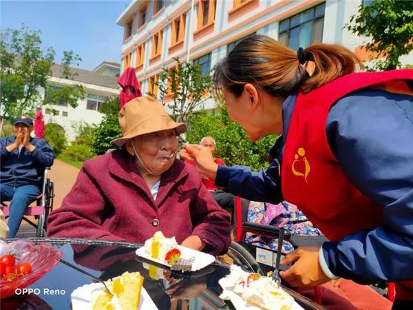 志愿者們首先為老人獻(xiàn)上精彩的節(jié)目表演,唱軍歌、演相聲,現(xiàn)場(chǎng)響起一片掌聲,非常熱鬧。演罷節(jié)目,志愿者們細(xì)心地為老人們戴上“生日帽”,為老人唱起生日歌,并將蛋糕切成小塊,一邊與老人嘮家常,一邊暖心地喂老人吃蛋糕。老人們紛紛表示自己已經(jīng)有好多年沒(méi)這么開(kāi)心了,熱鬧的生日真讓自己覺(jué)得回到了小時(shí)候。其中有一位老人還像小孩子一般許了愿望,她希望志愿者們永遠(yuǎn)年輕快樂(lè),希望身邊的老伴永遠(yuǎn)保持健康。