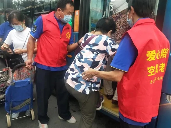秋風(fēng)吹散了暑氣,正是趕集的好天氣。上午九點(diǎn),志愿者們來到南港安置小區(qū)公交站??吹嚼先藗兝鴿M滿的貨物,志愿者們先組織老人排好隊(duì),依次乘車。有的老大娘買的東西太多,無法把小車拿上公交車,賈軍迅速上前幫著拿上車。