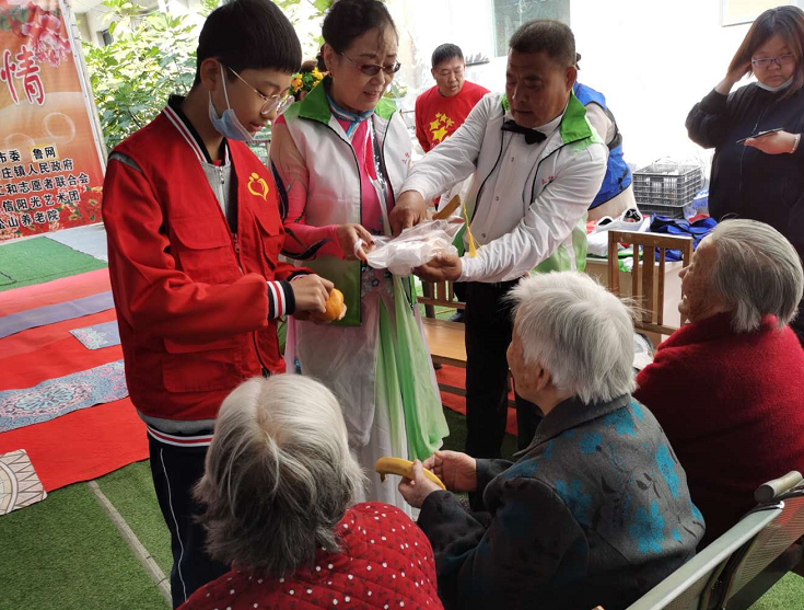 10月25日,重陽(yáng)節(jié),“青島愛(ài)心陪伴”交運(yùn)萊西事業(yè)部馨月湖志愿者團(tuán)隊(duì)長(zhǎng)崔克臣利用休息日,帶上在萊西市濟(jì)南路中學(xué)上初三的兒子崔新雅到萊西市松山養(yǎng)老院看望老人,送去親手挑選的桔子與香蕉,還一個(gè)個(gè)扒開(kāi)遞到正在看慰問(wèn)演出的老人手里。