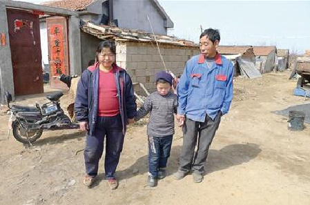 11年前,還沒(méi)滿(mǎn)月的遲宗郭和半袋奶粉被放進(jìn)一個(gè)紙箱,出現(xiàn)在遲煥武家門(mén)口?;楹缶梦瓷拥倪t煥武、郭桂春夫婦如獲至寶。沒(méi)過(guò)幾天,夫妻倆就發(fā)現(xiàn)這個(gè)孩子有些異樣:身體弱,特別容易感冒。醫(yī)生告訴遲煥武,這個(gè)孩子不僅患有先天性心臟病,還可能罹患腦癱、智障等多種疾病,即使闖過(guò)這一關(guān),以后也可能站不起來(lái)、不會(huì)走路。再累再難,遲煥武從來(lái)沒(méi)有想過(guò)放棄這個(gè)孩子?!爱?dāng)他叫我‘爸爸’的時(shí)候,我心里也是很高興。雖然孩子智商不高,但他知道心疼我。我在溝里干活,他會(huì)把飯放到鍋里,讓他奶奶幫忙燒柴火,給我熱飯。有了這些,我就很滿(mǎn)足?!彼f(shuō)。