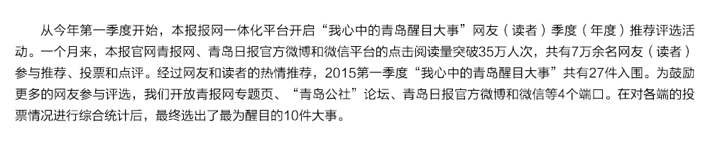 一個多月,好幾百個“金點子”!咱青島身邊懂文化、關心文化事業(yè)的人還真不少,點子也都很不錯,而且引起了國內(nèi)很多省市網(wǎng)友的關注和投稿呢。[詳情]