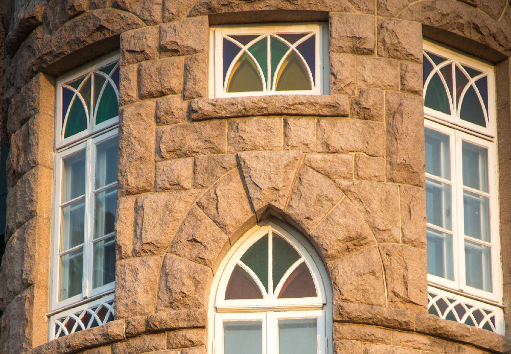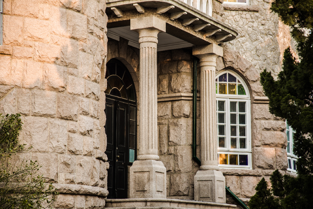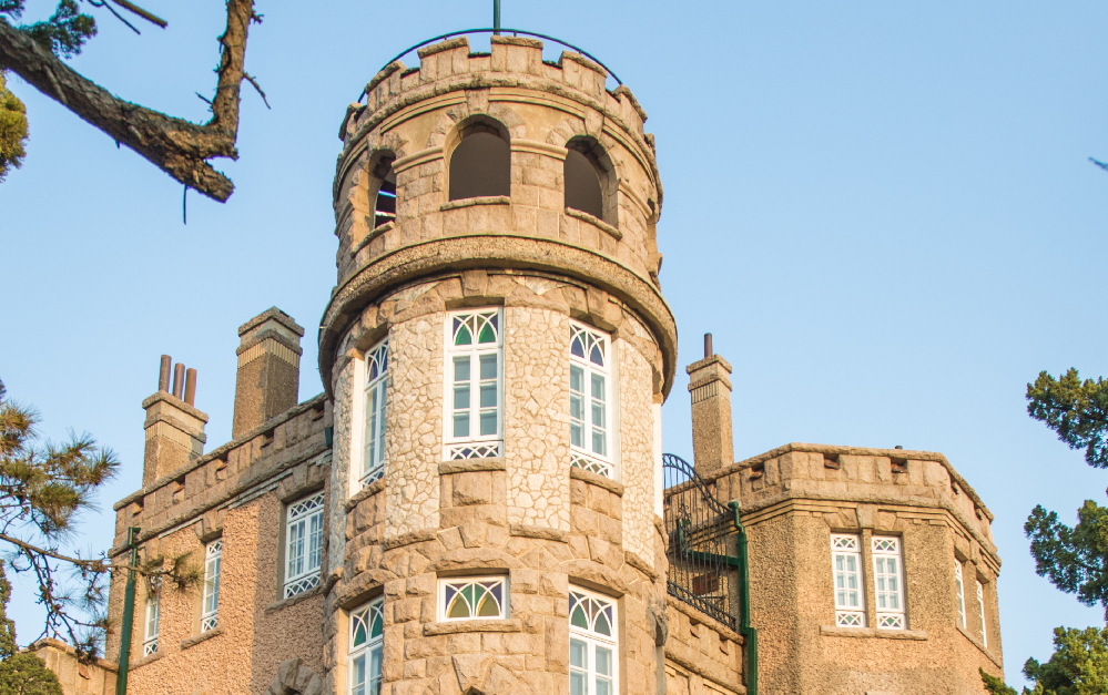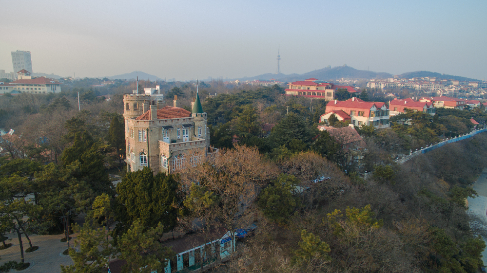 花石樓背靠八大關(guān),建于1930年,面臨第二海水浴場,風(fēng)景獨(dú)特,環(huán)境優(yōu)美。外墻由花崗巖石砌筑,塔樓頂部為雉堞式女兒墻。