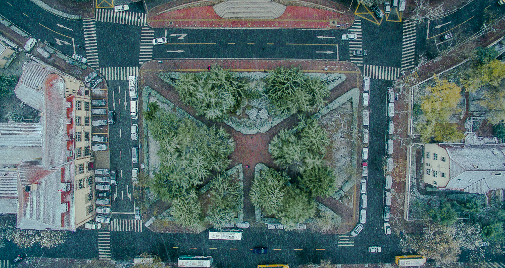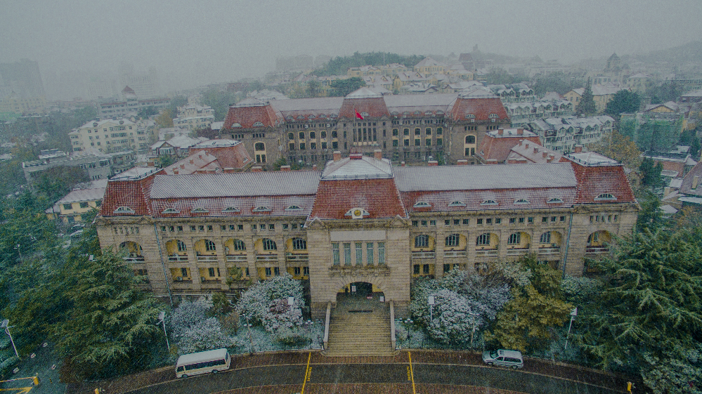 大樓建設(shè)歷時4年,至1906年落成并交付使用,耗資85萬馬克。大樓周圍環(huán)境的規(guī)劃設(shè)計(jì)也十分講究,樓體坐北朝南,樓門前自左向右輻射出6條馬路。正南方恰好正對青島路,并以青島路為軸線,周圍道路呈對稱之勢。