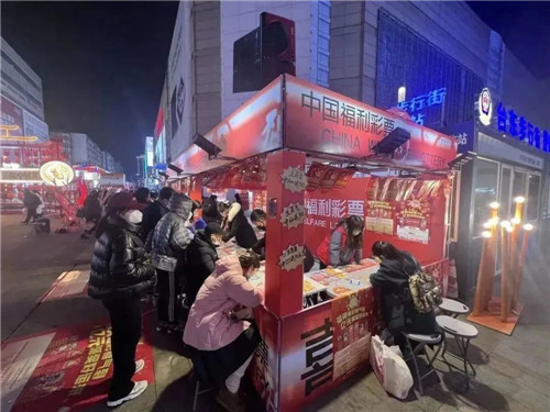 ?????? 在步行街中段大大的弧形紅燈籠旁邊,就是熱熱鬧鬧人氣旺的福彩刮刮樂小賣場。即日起至正月十六,您都可以在這里看到它的身影。