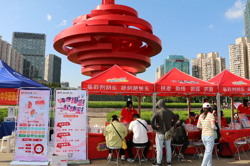 ????“五月的風(fēng)”雕塑下,福利彩票展示區(qū)吸引了來往的行人駐足?,F(xiàn)場設(shè)有福彩公益宣傳區(qū)和“刮刮樂”彩票銷售區(qū),青島福彩為市民朋友們準(zhǔn)備了精美小禮品,同時也有志愿者向大家介紹福利彩票知識,宣傳福彩公益慈善理念,傳遞福彩公益文化。