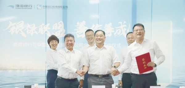?????? 8月30日,渤海銀行青島分行與中國(guó)出口信用保險(xiǎn)公司山東分公司舉行“銀保聯(lián)盟 善作善成”全面合作簽約儀式,簽約儀式上,中國(guó)信保山東分公司黨委委員、總經(jīng)理助理劉剛與渤海銀行青島分行黨委委員、副行長(zhǎng)張照凌代表雙方簽約,中國(guó)出口信用保險(xiǎn)公司山東分公司黨委書(shū)記魏廣遠(yuǎn)、渤海銀行青島分行黨委書(shū)記、行長(zhǎng)張金鳳共同見(jiàn)證。