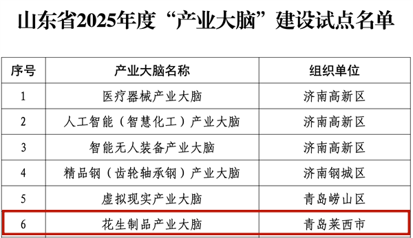 ??????? 近日,山東省2025年度“產(chǎn)業(yè)大腦”建設(shè)試點(diǎn)名單公布,萊西“花生制品產(chǎn)業(yè)大腦”成功入選。該項(xiàng)目由萊西市人民政府牽頭組織,聯(lián)合北京國聯(lián)視訊信息技術(shù)股份有限公司(簡稱國聯(lián)股份)、青島國投興聯(lián)數(shù)字產(chǎn)業(yè)投資發(fā)展有限公司(青島國投實(shí)業(yè)板塊控股子公司,簡稱國投興聯(lián))、青島寶泉花生制品有限公司建設(shè)運(yùn)營,由青島水潤家投資發(fā)展有限公司揭榜掛帥,攜手打造花生制品領(lǐng)域的“最強(qiáng)大腦”。