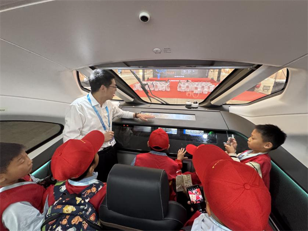 ?????? 剛踏入展館,逸群快軌列車便成為小記者們的首個“探索目標(biāo)”?!爱?dāng)車子遇到問題時應(yīng)該按哪個按鈕?”在逸群快軌列車上,講解老師的提問,引來小記者們爭先恐后的回應(yīng)。孩子們圍在車廂四周,仰頭聆聽每一個技術(shù)細(xì)節(jié),不時拋出新的疑問。