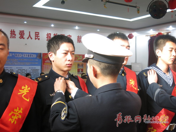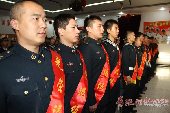 ????“送戰(zhàn)友,踏征程,默默無語兩眼淚……”25日上午8時(shí)30分,伴隨著悠揚(yáng)的《駝鈴》歌聲,海軍91183部隊(duì)舉行軍警民校歡送退伍老兵儀式。27名退伍老兵摘下臂章、領(lǐng)花和胸徽,在戰(zhàn)友依依不舍的惜別聲中,揮淚離開第二故鄉(xiāng),踏上新的人生征程。