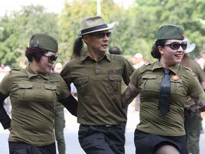 廣場舞華麗升級!北京大媽穿軍服齊跳水兵舞