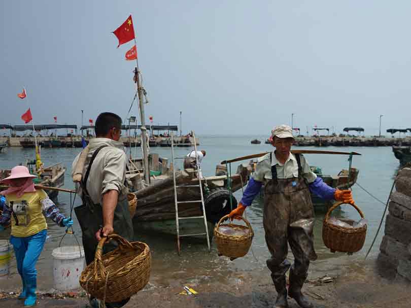 高清:實拍青島海蜇收獲季 碼頭一天捕獲5噸