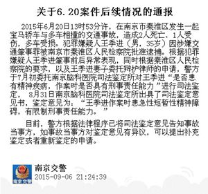 南京交警公布寶馬案進(jìn)展 肇事者患有精神障礙