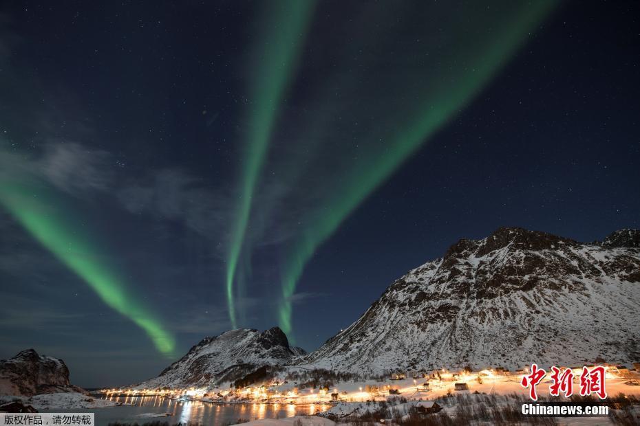 近日,挪威Unstad鎮(zhèn)上空出現(xiàn)極光,奇幻美麗如從山口噴出。