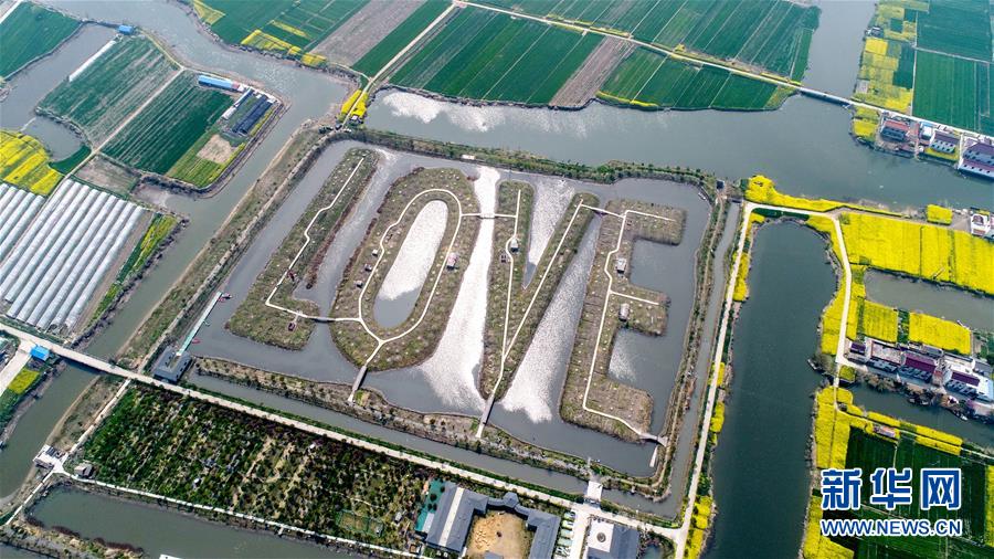 這是4月2日航拍的江蘇省海安縣白甸鎮(zhèn)櫻桃園“愛情島”。