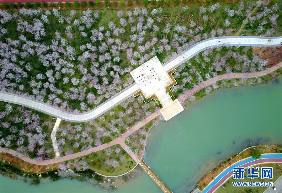 近日,位于貴州省黔西南布依族苗族自治州義龍試驗區(qū)魯屯古鎮(zhèn)的櫻花競相綻放,美不勝收。