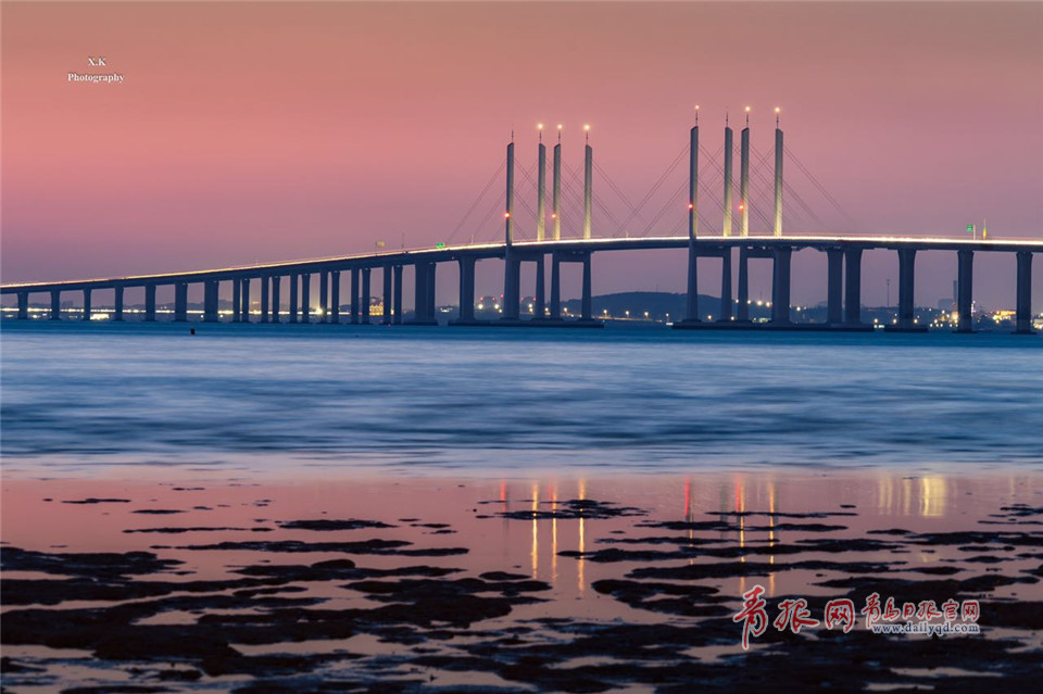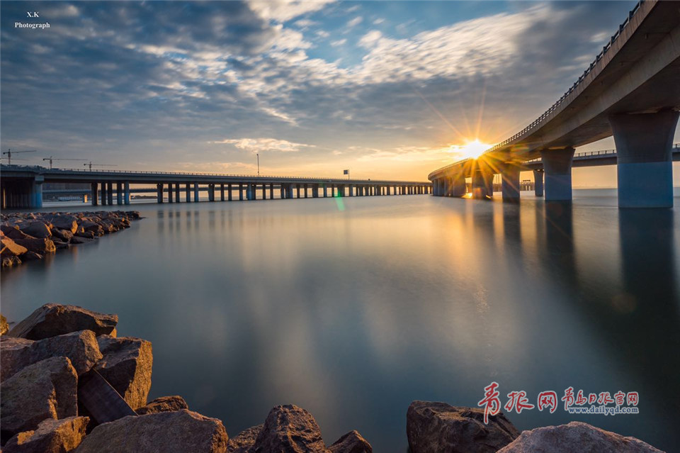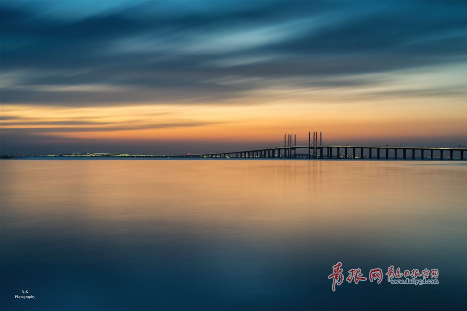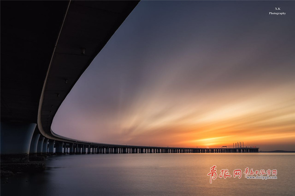 粗壯的橋墩、曲線般的橋面、筆直的鋼索……隨著時(shí)空的變化時(shí)而柔美、時(shí)而陽剛。穿越時(shí)間的印記,青島膠州灣大橋參差的線條與霞光遙相呼應(yīng),巧奪天工的建筑瞬間藝術(shù)范兒爆棚。青島攝影師從不同視角和時(shí)空定格了這座海上蛟龍的震撼和美麗,一起來欣賞。