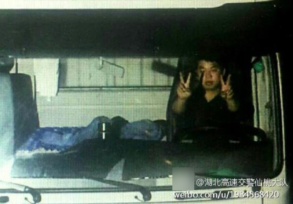????同樣的事情也發(fā)生在2013年12月14日,湖北省公安廳高速公路警察總隊(duì)二支隊(duì)下陸大隊(duì),執(zhí)法民警在篩選高速路違法車輛圖片時,發(fā)現(xiàn)一張圖片,車牌為京KBS115的白色起亞牌越野車駕駛員單手持方向盤,右手竟向高速路上方龍門架的監(jiān)控?cái)z像頭舉起了剪刀手,滿臉堆笑。監(jiān)控顯示該司機(jī)成功超越了幾輛車,以此慶祝自己超速成功。副駕駛未系安全帶,雙腳蹺起放在前擋風(fēng)玻璃,和司機(jī)聊天。該車時速139km/h,超速39%,地點(diǎn)為大廣南高速大慶往廣州方向2562km處。該車因超速違法,被扣6分,罰款200元的處罰。