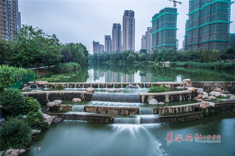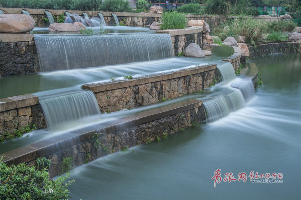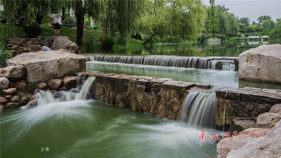 慢門鏡頭拍攝的李村河“小瀑布”霧化如紗,美景如畫,吸引眾多市民前來觀賞。