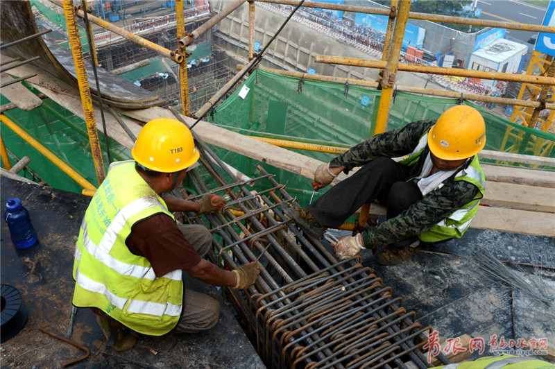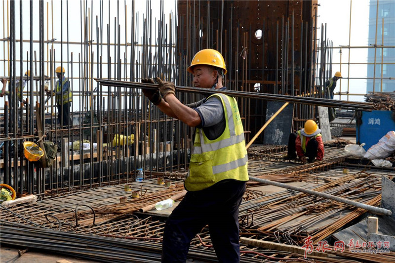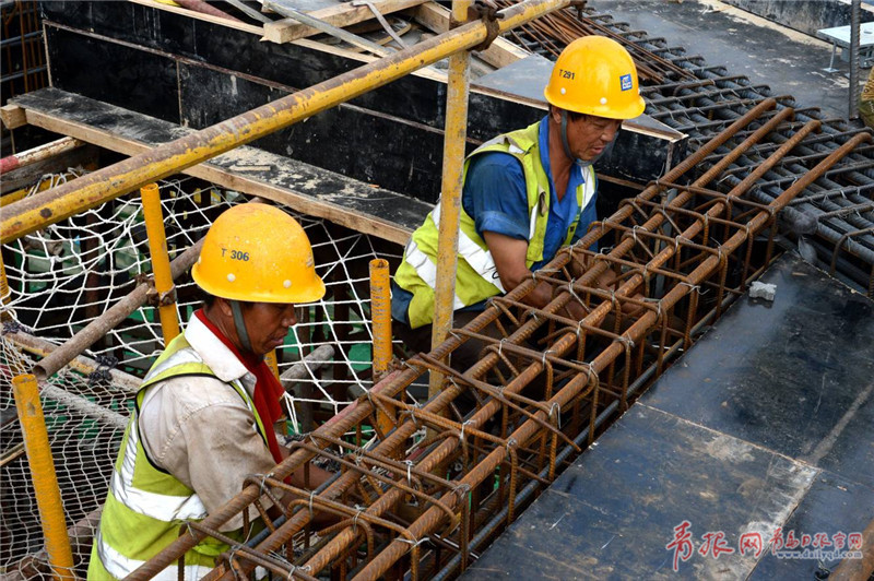 建設(shè)者們頭上太陽(yáng)烤,腳下鐵板燒,雖然靠近海邊,但吹來(lái)的濕熱海風(fēng)絲毫感不到一絲絲涼意。