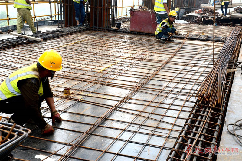 記者看到每位建設(shè)人員身上的衣服都是濕乎乎的。據(jù)了解,為了做好防暑降溫工作,施工人員在11點(diǎn)到下午2點(diǎn)停止施工。