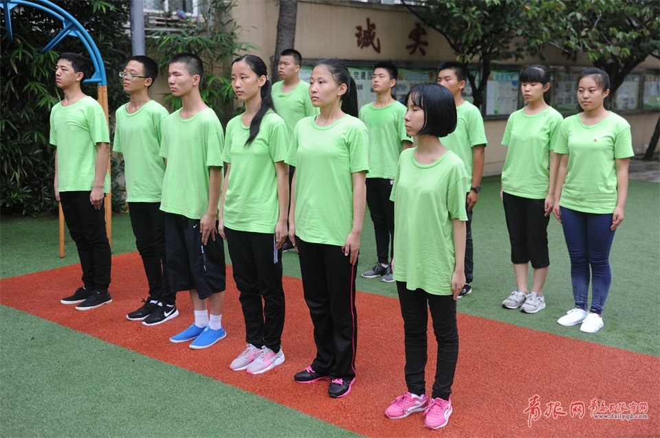 “向右——看齊!”“向前看!”“向右——轉(zhuǎn)!”8月24日,在青島盲校的校園里,52名新生在教官的帶領(lǐng)下,有模有樣地進行隊列訓(xùn)練。