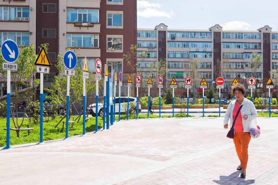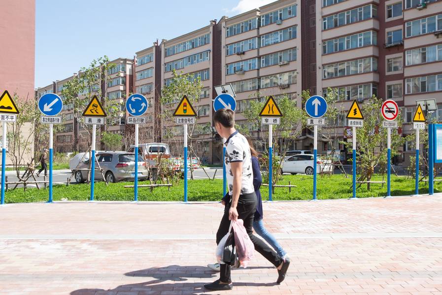 近日,長春市經開區(qū),小區(qū)內出現(xiàn)三十多個道路警示牌,禁行,禁止直行,禁止左轉……這些路牌密集排列,一個挨著一個,外觀跟正常國道、市區(qū)道路上的路牌沒有兩樣,但如此密集排列在小區(qū)里,來往行人對此感到好奇,上前觀看。