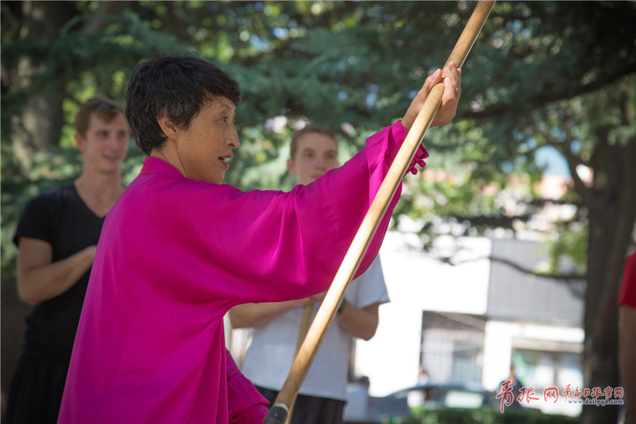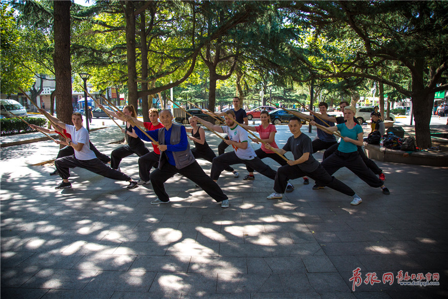9月12日,在老舍公園,12名德國武術(shù)愛好者來青學(xué)習(xí)中國傳統(tǒng)武術(shù),帶隊的是旅居德國的趙東老師。(攝影 韓豐)