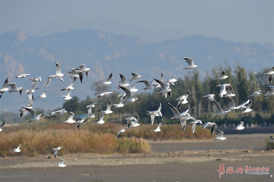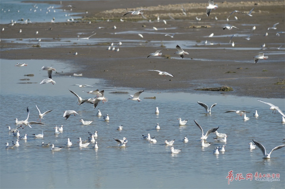2017年10月30日,隨著候鳥遷徙季的到來,越來越多的紅嘴鷗飛抵青島膠州灣畔越冬,這群海上精靈如約而至,為青島添上一抹靈動的色彩。