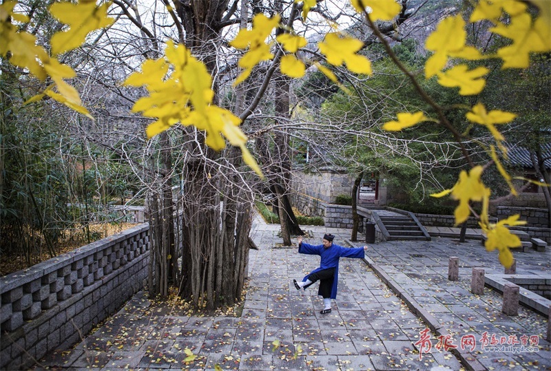 品嶗山茗茶、食道家齋宴、聽道教仙樂、賞太清水月、習(xí)內(nèi)家拳法,不論是游客還是香客,都能在這里找到心靈的歸宿。歷史給古老而充滿朝氣的嶗山留下了珍貴的遺產(chǎn):嶗山民間故事、嶗山道教音樂、嶗山道教武術(shù)和螳螂拳等均入選國家級、省級非物質(zhì)文化遺產(chǎn)名錄。圖為嶗山道士舞刀。