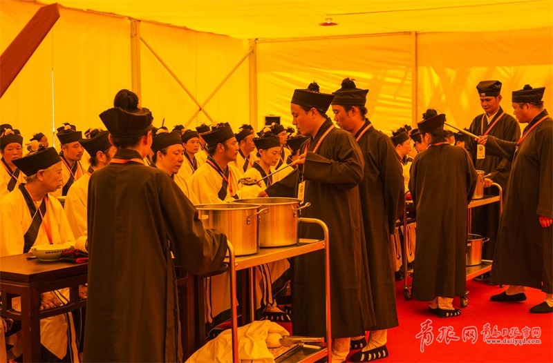 道教認(rèn)為只要守心歸真,“不請福而福來,不攘禍而禍去矣”。圖為嶗山道士進(jìn)齋。